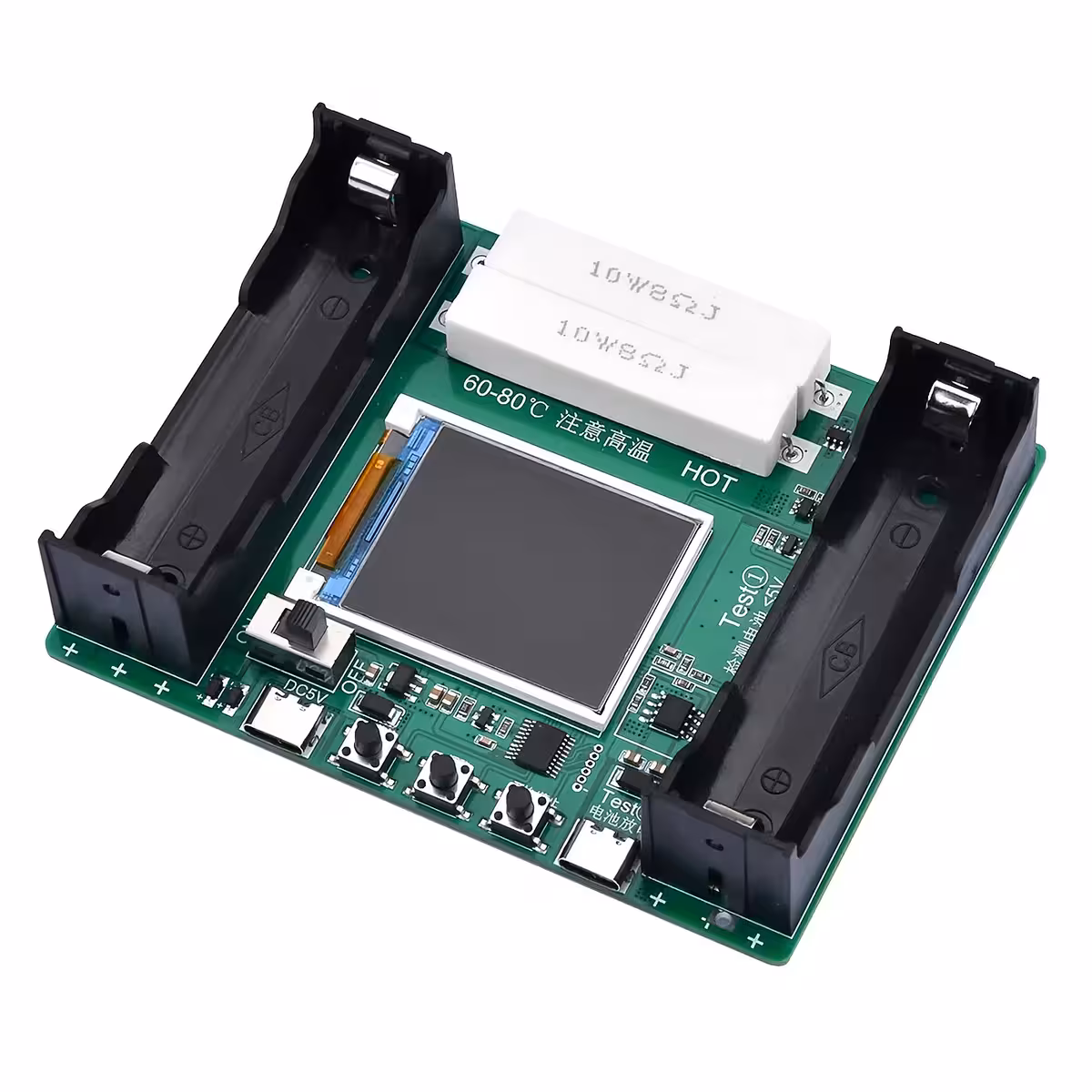 • Twee 18650 slots: Eén voor het voeden van de module, één voor testen.