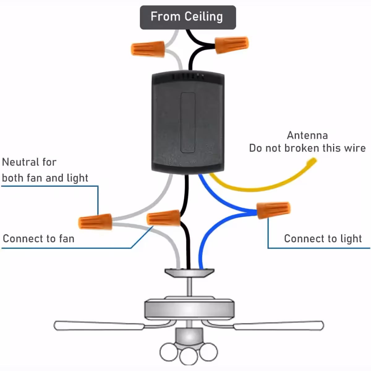 • Breed compatibel: sfeerverlichting, plafondventilatoren, afzuigkappen, ventilatoren, etc.