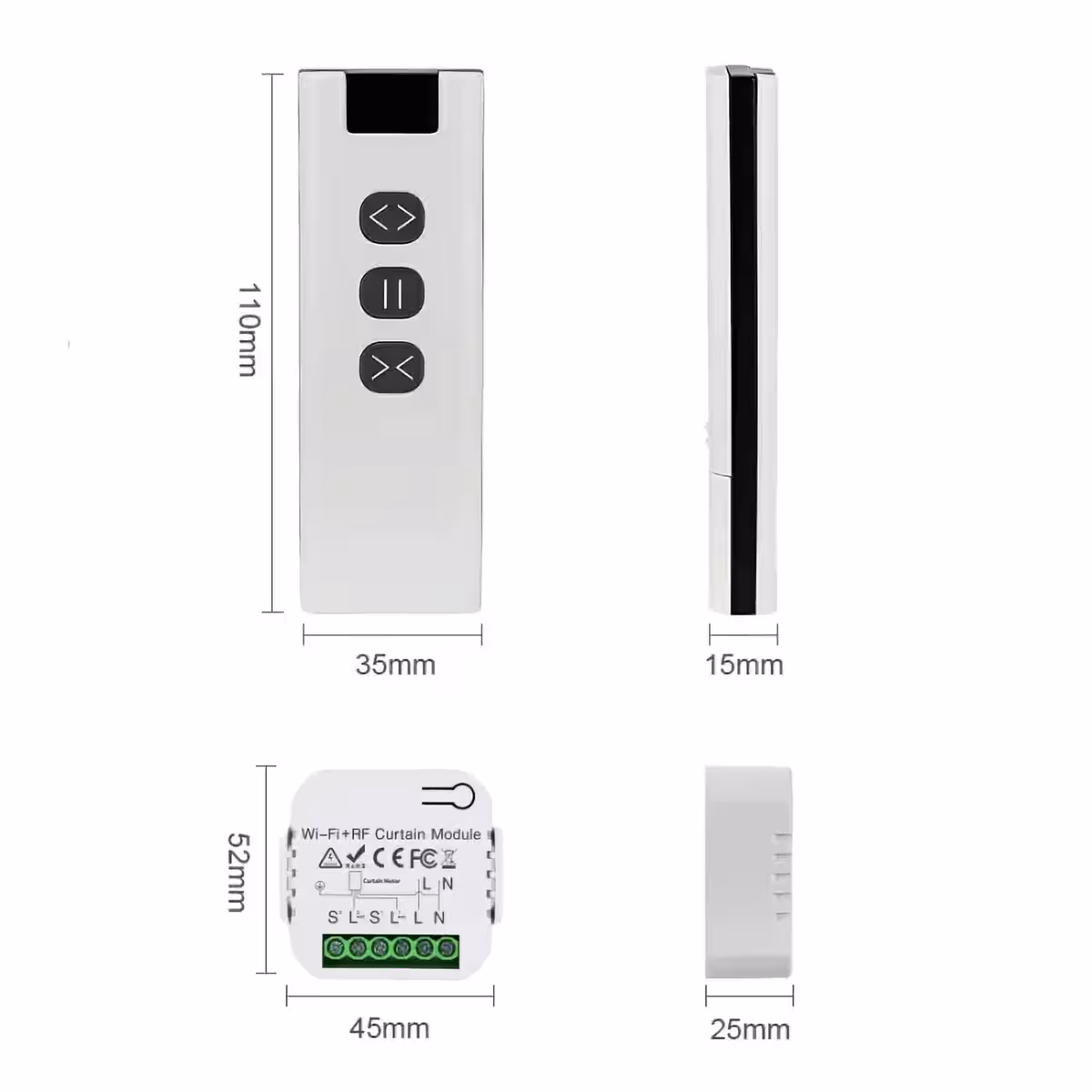 - 1 x WiFi + RF controller voor rolluiken, jaloezieën, gordijnen, vitrage, luifels, etc.