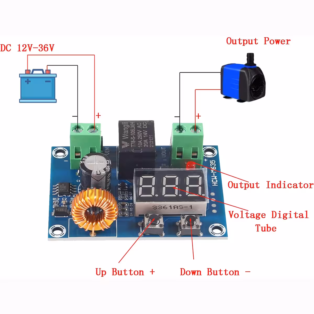 12V–36V Batterij Ontlading Beschermingsmodule voor Auto, Zonnepanelen, Accu’s