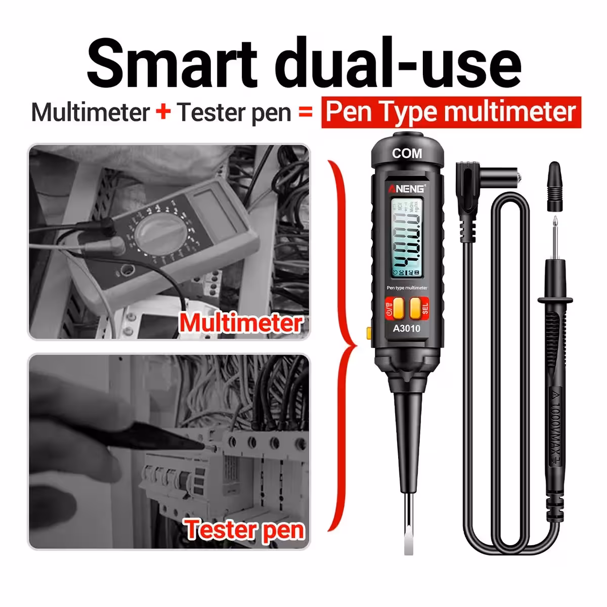 Ontdek een multifunctionele spanningsmeter ideaal voor auto-diagnose, doe-het-zelf elektrische projecten en huisreparaties. Deze digitale spanningspen meet AC/DC spanning, weerstand, frequentie en beschikt over NCV-functie, True-RMS en verlicht display. Essentieel voor iedere professional of elektronicaliefhebber.