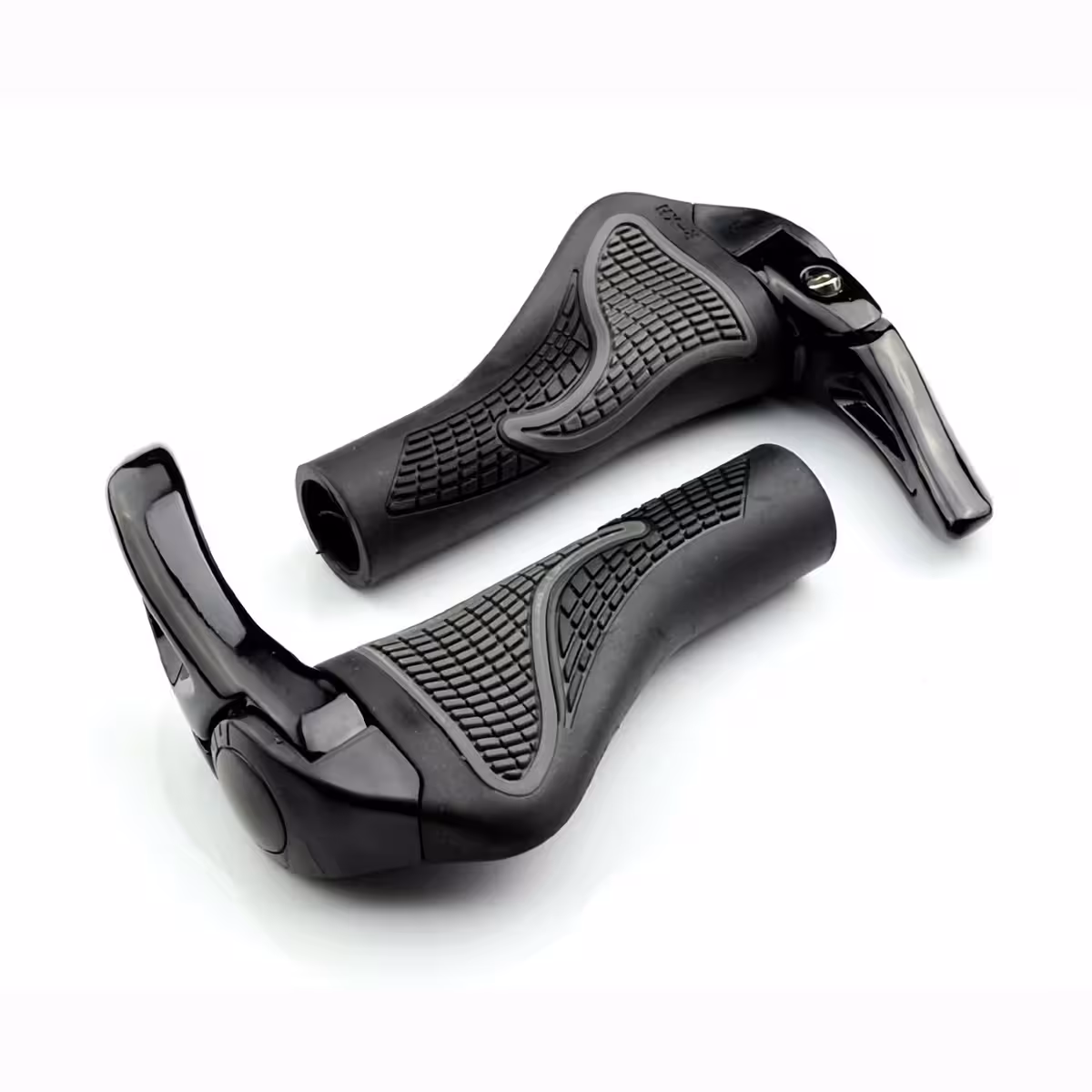MTB Mountain Bike handvatten van rubber met lock-on ringen en ergonomische hoorns, geschikt voor elk fietsstuur of elektrische scooter.
