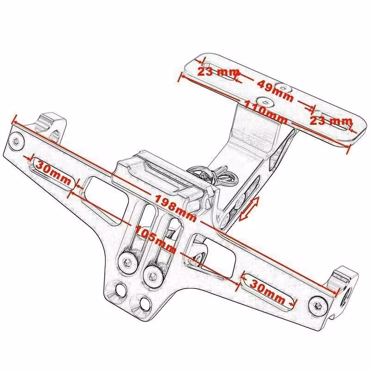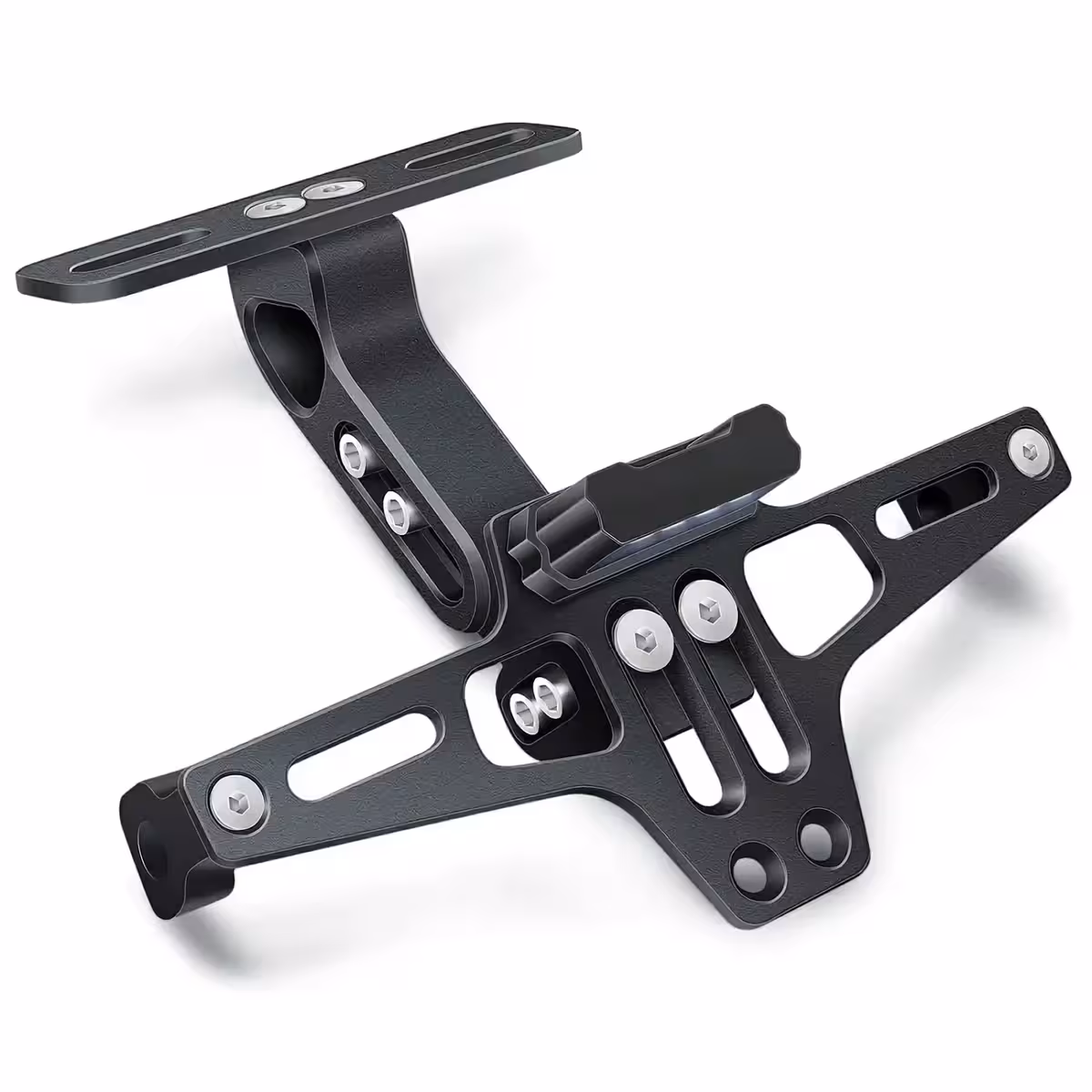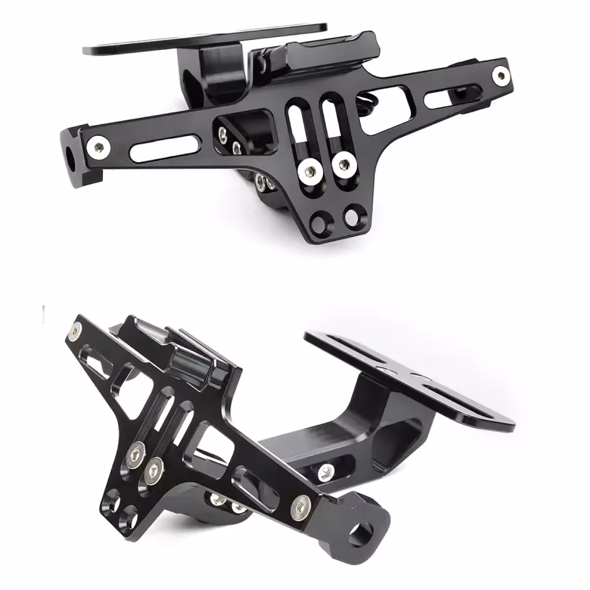 Deze inklapbare motornummerplaathouder is gemaakt van 6063-T6 aluminiumlegering, wat uitstekende weerstand biedt tegen slijtage en slechte weersomstandigheden. Het inklapbare mechanisme maakt het mogelijk de hoek aan te passen voor een perfecte bevestiging, ongeacht de vorm of grootte van de motor.