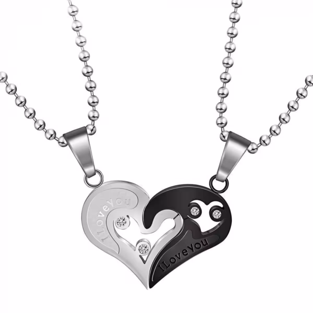 De set van 2 couple kettingen bevat hangers in de vorm van hartjesparen, gemaakt van hoogwaardig roestvrij staal. Het moderne en symbolische ontwerp maakt ze ideaal als liefdesaccessoires, verjaardagscadeaus of als teken van verbondenheid tussen partners.