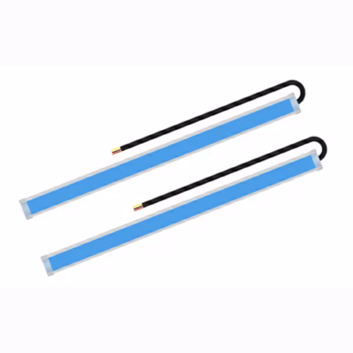 Het pakket bevat 2 flexibele LED-strips van 60 cm elk. Ze kunnen worden ingekort per 3 LED’s.