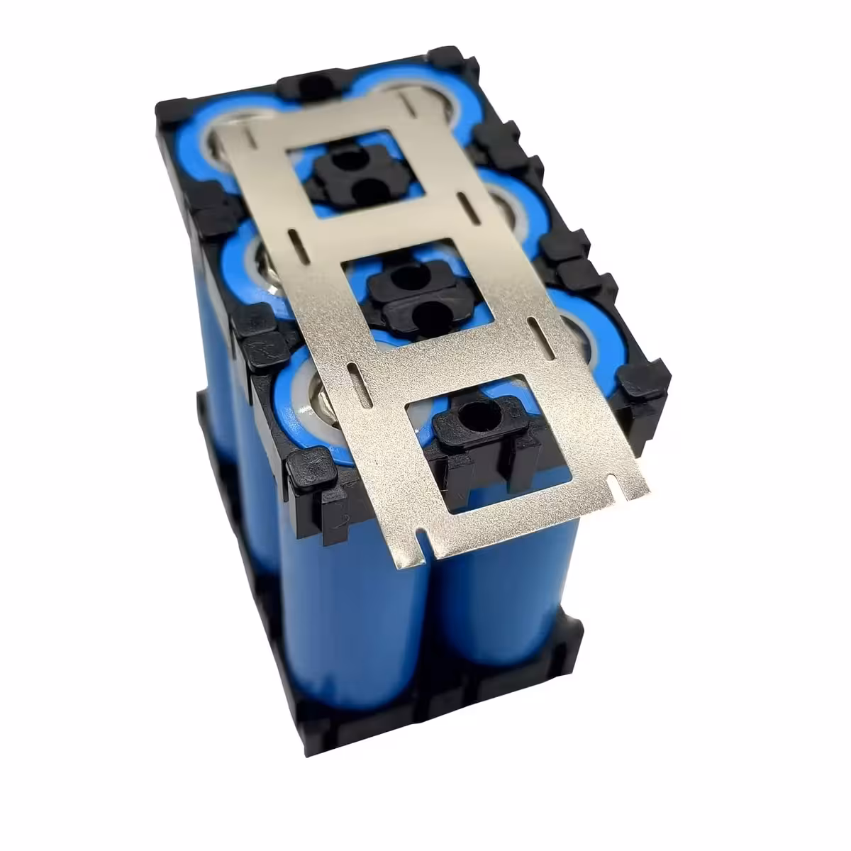 - Leg de strip over de 18650 cellen