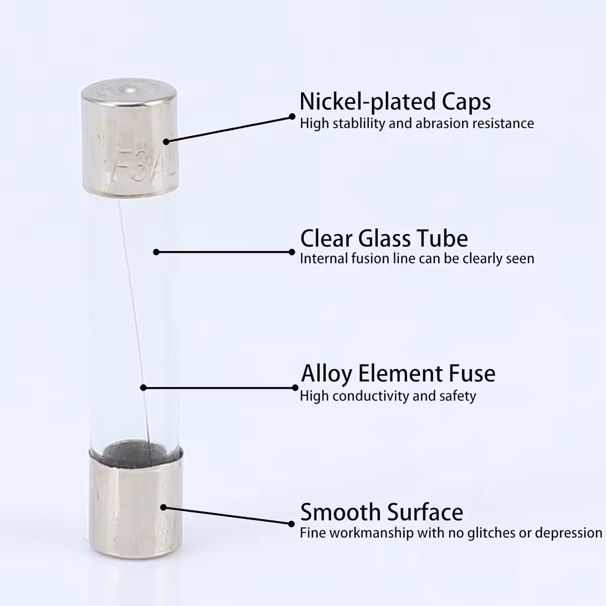 Deze glaszekeringen zijn geschikt voor gebruik in industriële, commerciële en huishoudelijke omgevingen. Monteer ze op elektrische of elektronische apparaten om bescherming tegen overstromen te bieden en schade aan apparatuur te voorkomen.