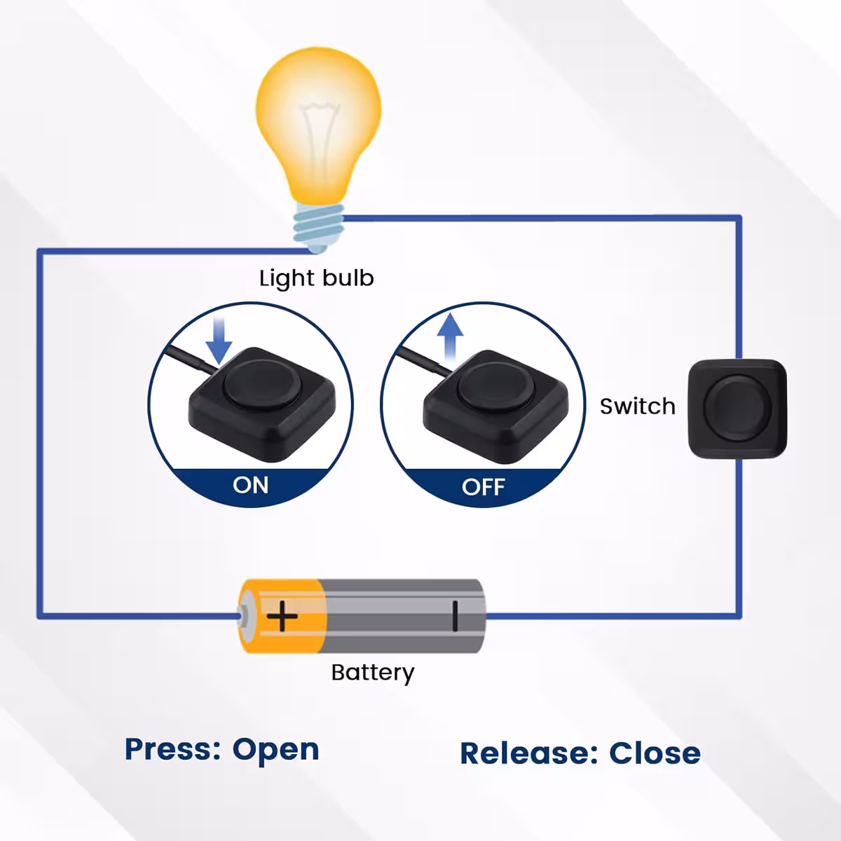 Test de momentfunctie door de knop in te drukken — deze schakelt alleen zolang de knop wordt ingedrukt.