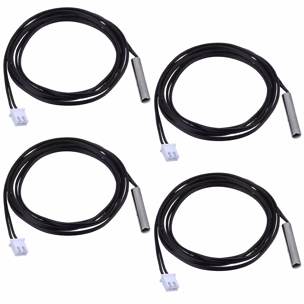 Deze set van 4 NTC 10K temperatuursensoren is ontworpen voor nauwkeurige meting van water- en vloeistoftemperaturen