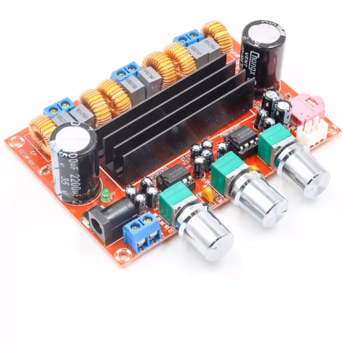 High-fidelity 2.1 audio stereo versterker, ideaal voor doe-het-zelf projecten, auto-audiosystemen, multimedia speakers of home-audiosystemen. Deze module is uitgerust met twee TPA3116D2 chips en een NE5532 toonregeling voor een zuiver, krachtig en nauwkeurig geluid.