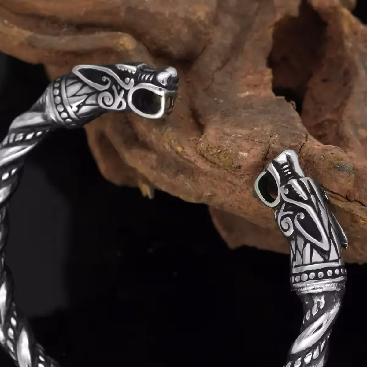 Versierd met zorgvuldig vervaardigde drakenkoppen, weerspiegelt de armband de krachtige symboliek van de Vikingcultuur. In de serie Vikings worden dergelijke vikingarmbanden geschonken als teken van loyaliteit, eer en volwassenwording – precies zoals Bjorn er een ontvangt in de eerste aflevering.