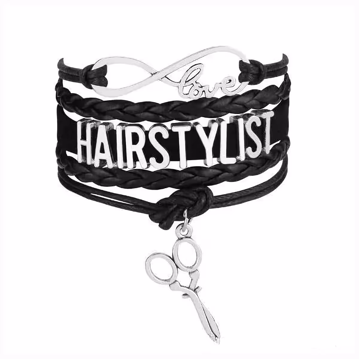 Deze hairstylist armband biedt extra stijl en professionaliteit tijdens je dagelijkse werkzaamheden en is gemakkelijk te combineren met de uitrusting en kleding in de kapperszaak of salon. Ook perfect als cadeau-idee voor collega’s in het vakgebied.